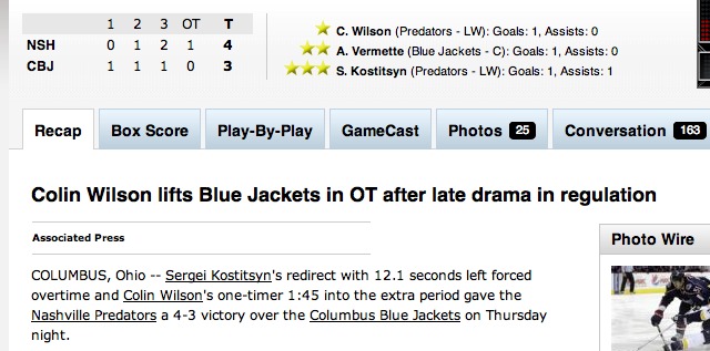 Oh, and to leave you with some SMH (Smack My Head) commentary, here’s what ESPN had to say about the Predators win against the Blue Jackets…