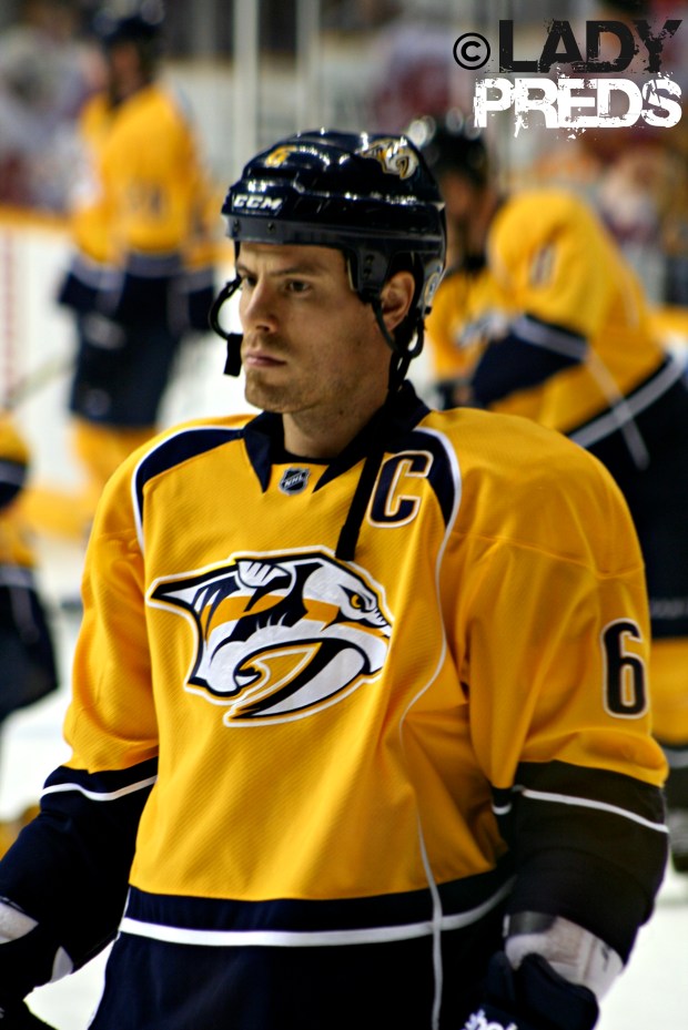 - The third period was clearly the most intense, both between the players and the fans. As stated before, the sound resonating from the Bridgestone Arena hasn’t been heard since the Spring during the playoffs (what a beautiful thing it is to not be able to hear yourself even think). Did the fans help focus the worn out home team? We’d like to think so. Captain Shea Weber scored the first goal to tie the game at 15:36 on the PP, with help from Ryan Suter and Martin Erat. THEN, at 18:24, Weber shot the game-winning goal to give the Predators their fourth consecutive win. Jordin Tootoo was given the assist on his goal.
